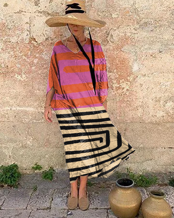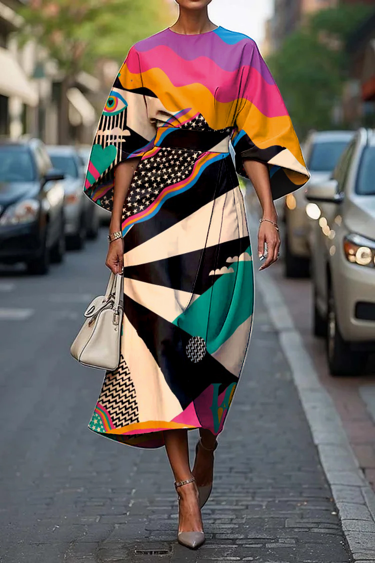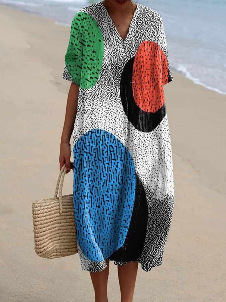Resort Abstract Print Loose Midi Dress