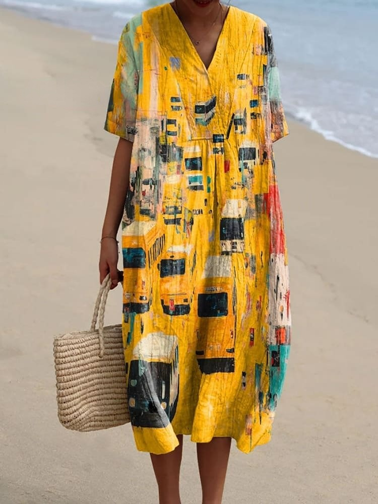 Women's Abstract Bus Art Print Flowy Dress