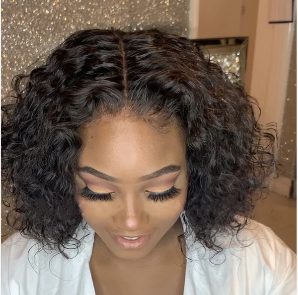 Glueless 360 Lace Wig Water Wave Brazilian Curly Bob Frontal Wigs