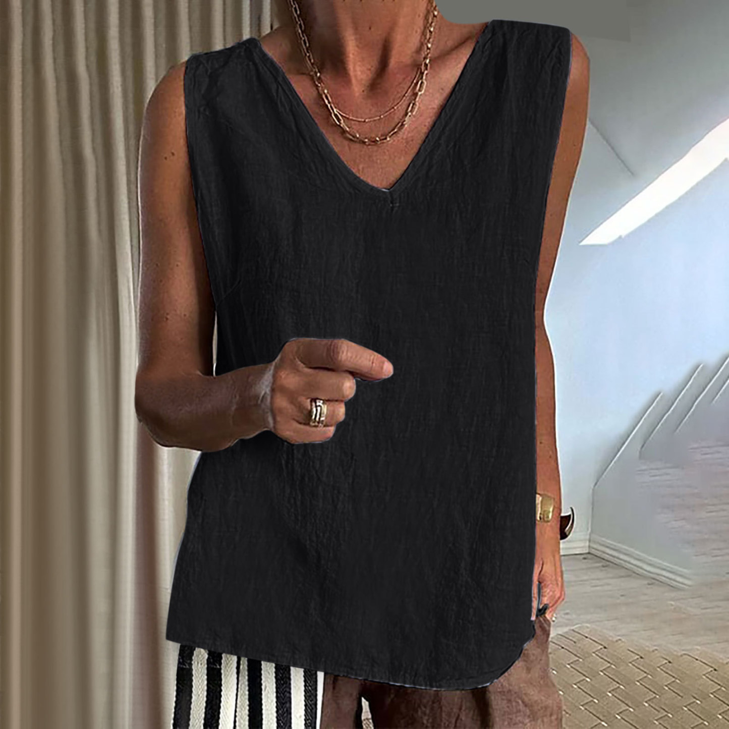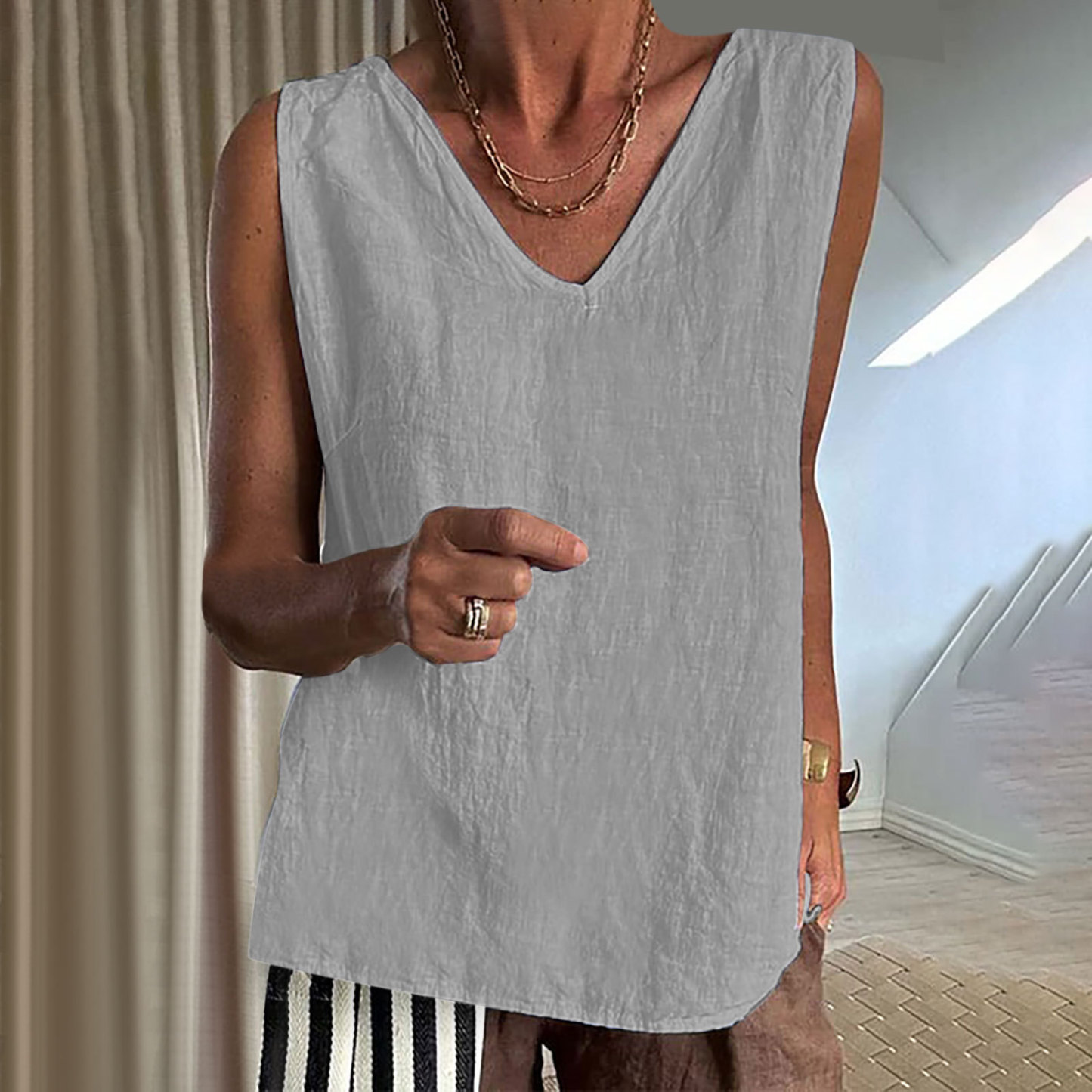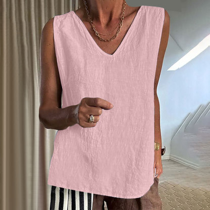 Women'S Cotton And Linen V-Neck Casual Solid Color Tank Top