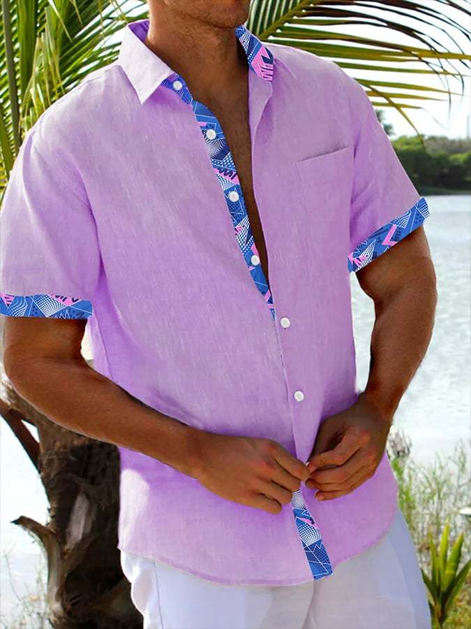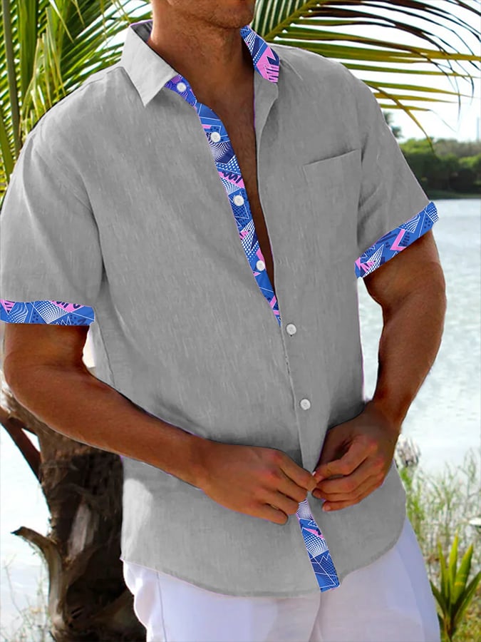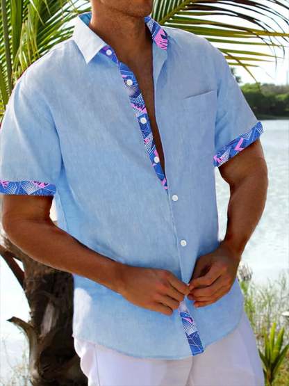 Men's Resort Style Contrast Print Casual Short Sleeve Shirt