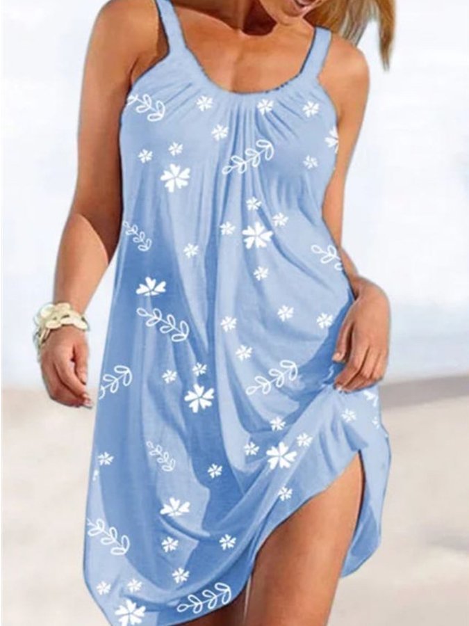 Printed Loose Resort Strap Beach Dress