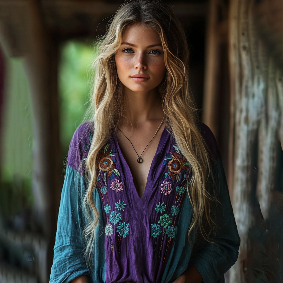 Retro Boho Tribal Floral Art Embroidery Print Cotton And Linen V-neck Loose Shirt