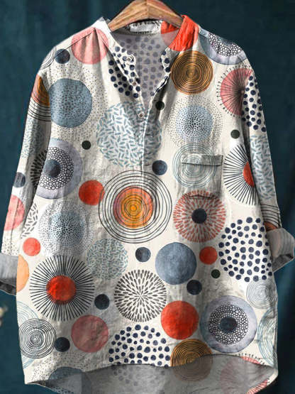 Watercolor Abstract Pattern Printed Women's Casual Long Sleeve Comfortable Cotton Shirt