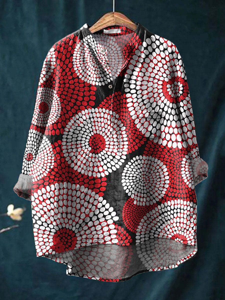 Women's Abstract Geometric Pattern Art Print Casual Long Sleeve Comfortable Cotton Shirt