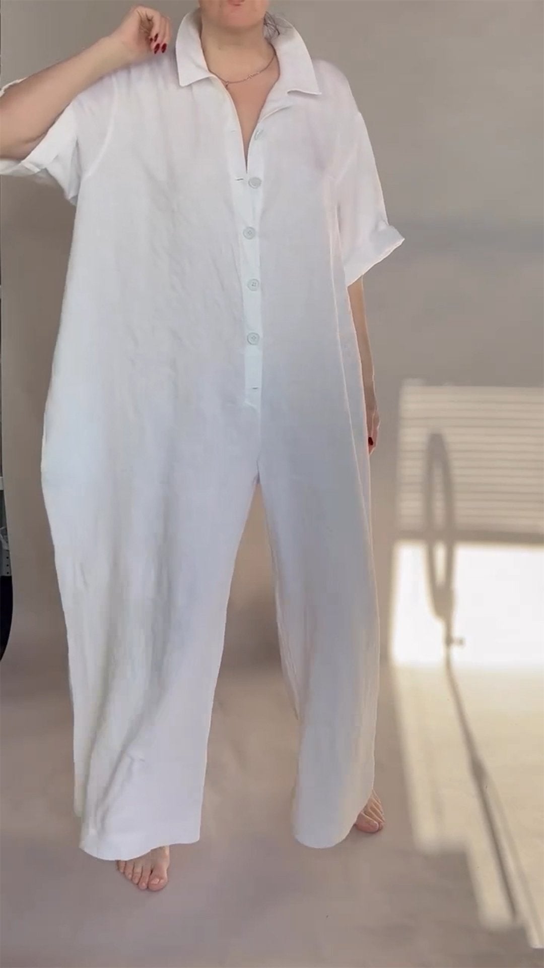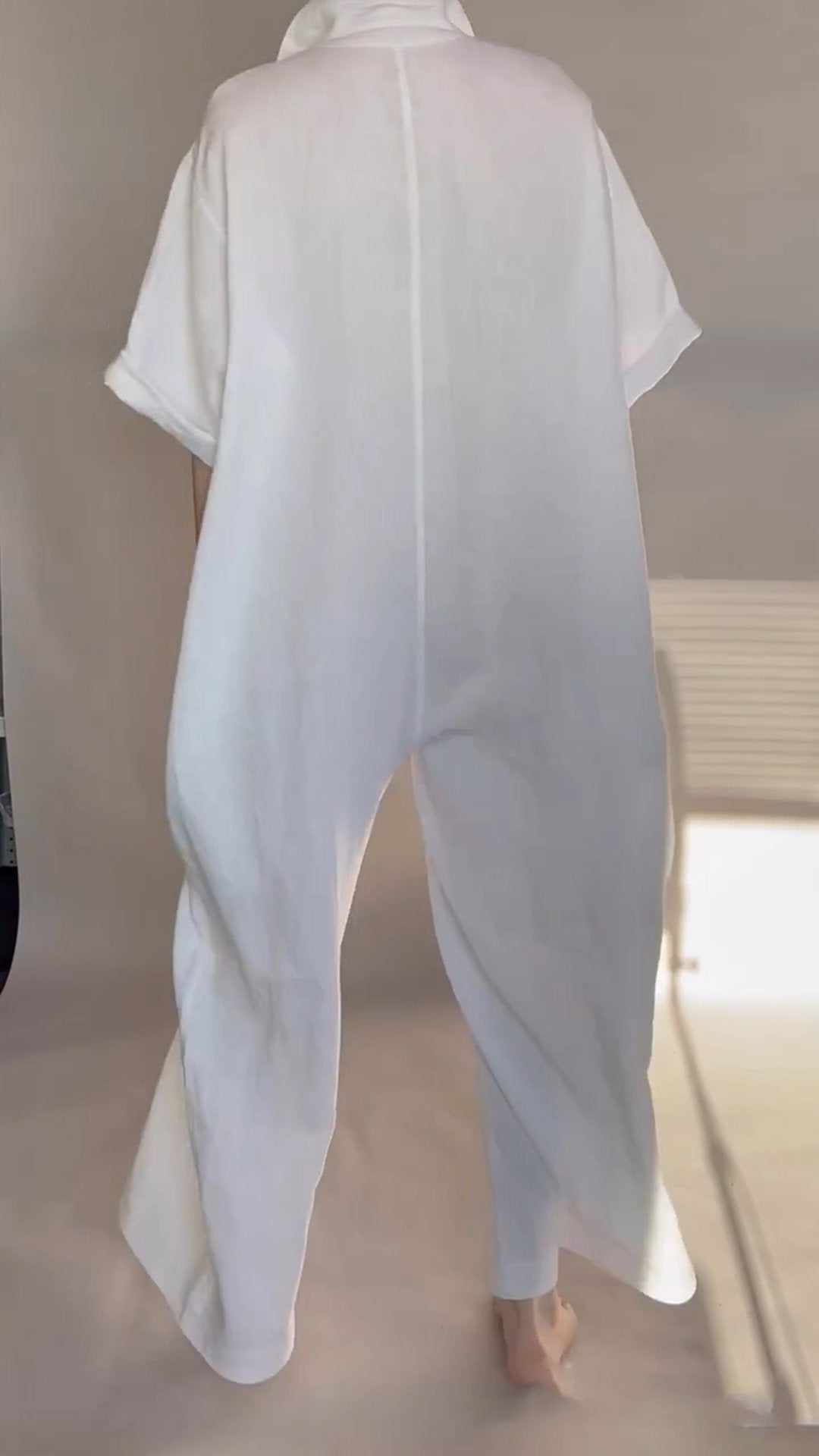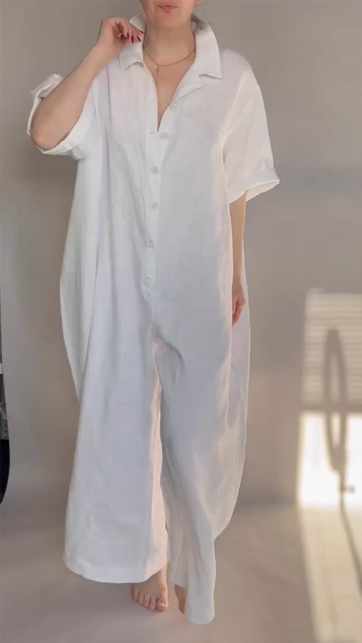 Women's Lapel Mid-length Sleeve Casual Jumpsuit