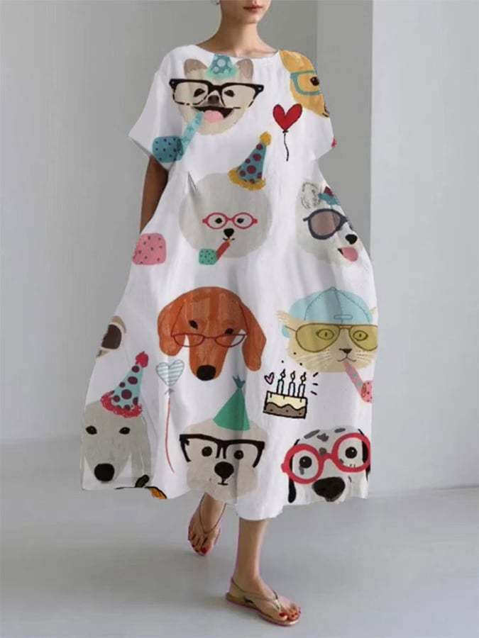 Women‘s Spring And Summer New Fashion Comfortable Loose Casual Dog Print Dress