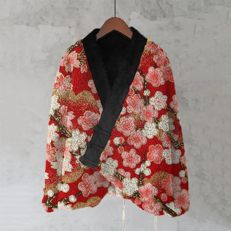 Japanese Sakura Art Plush Cardigan