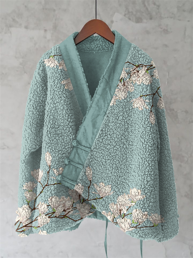 Magnolia Japanese Lino Art Cozy Fleece Kimono Cardigan