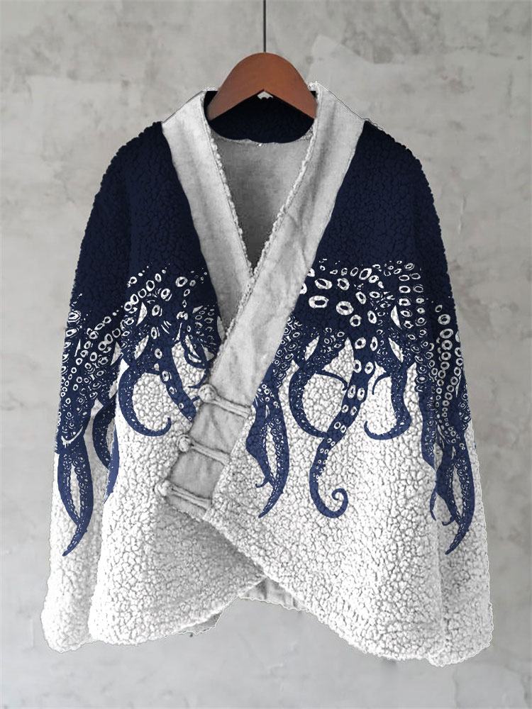 Vintage Japanese Ocean Octopus Print Cardigan