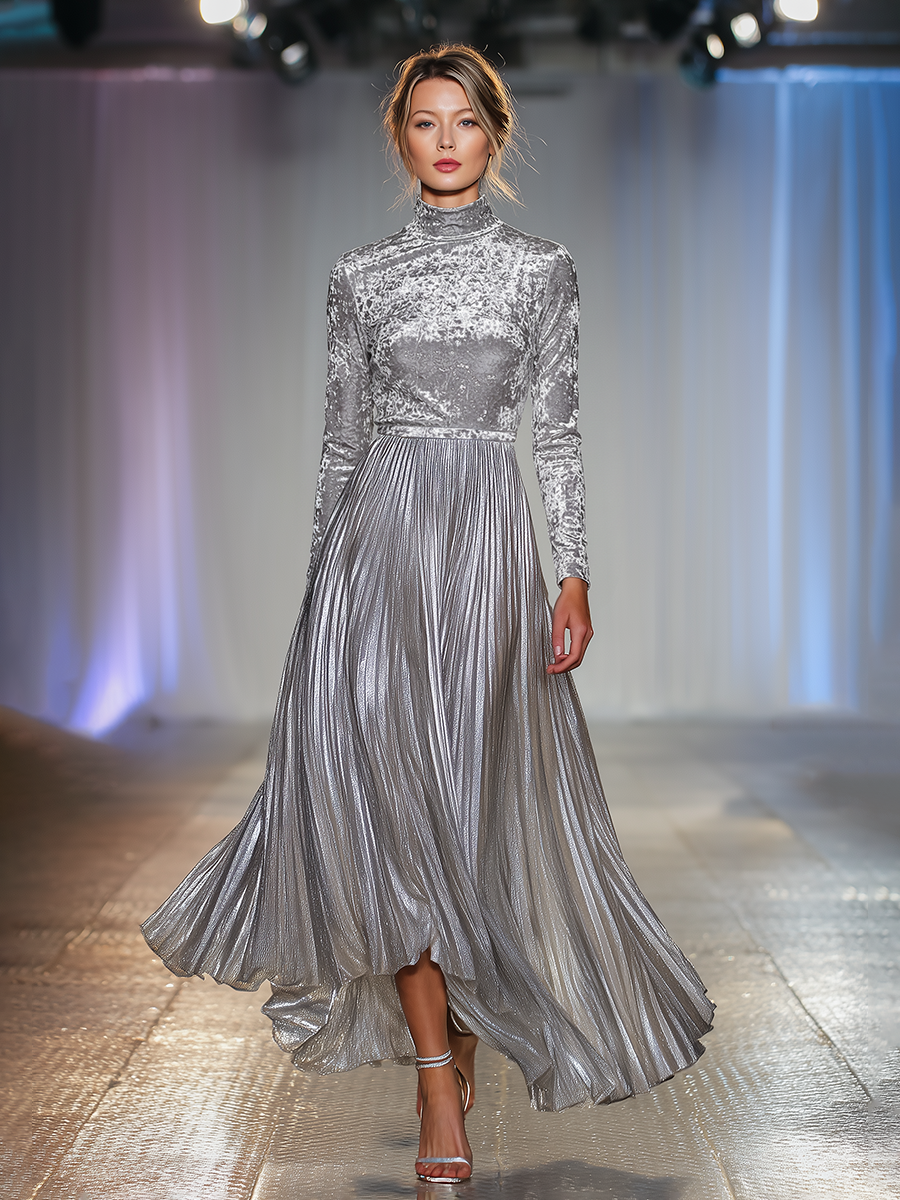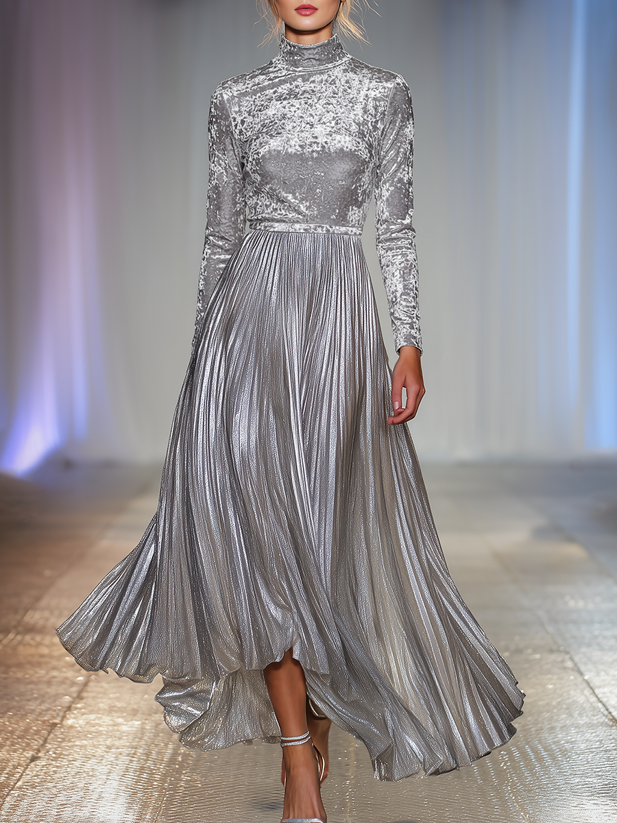 Elegant Retro Long-sleeved Velvet Maxi Dress