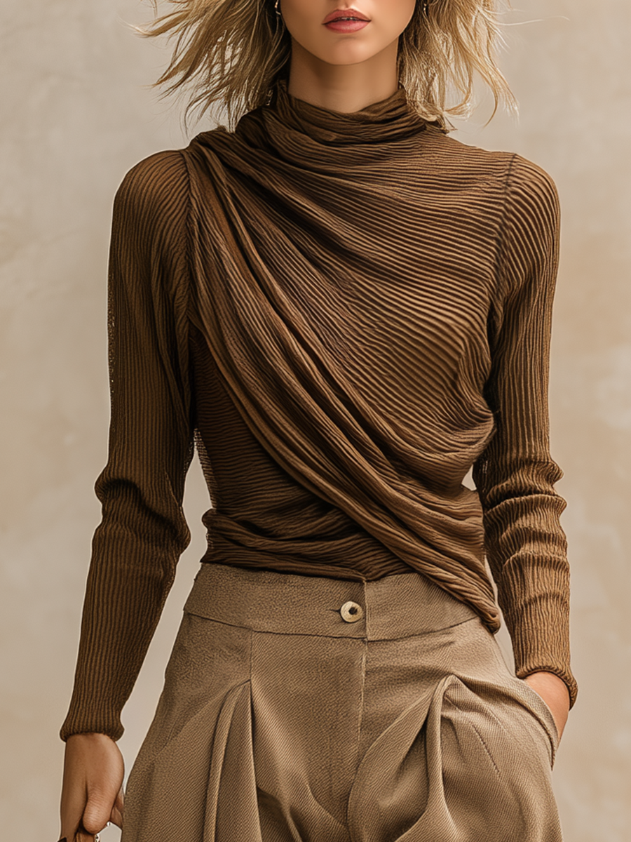Retro Western Style Stylish Pleated Brown T-shirt