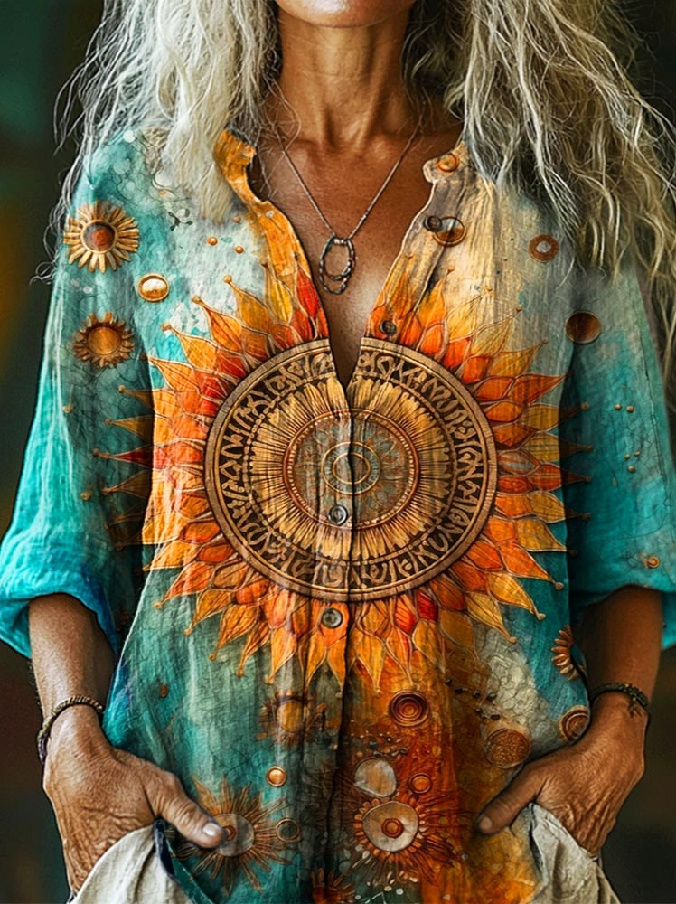 Women's Colorful Mandala Print Casual Cotton Linen Shirt