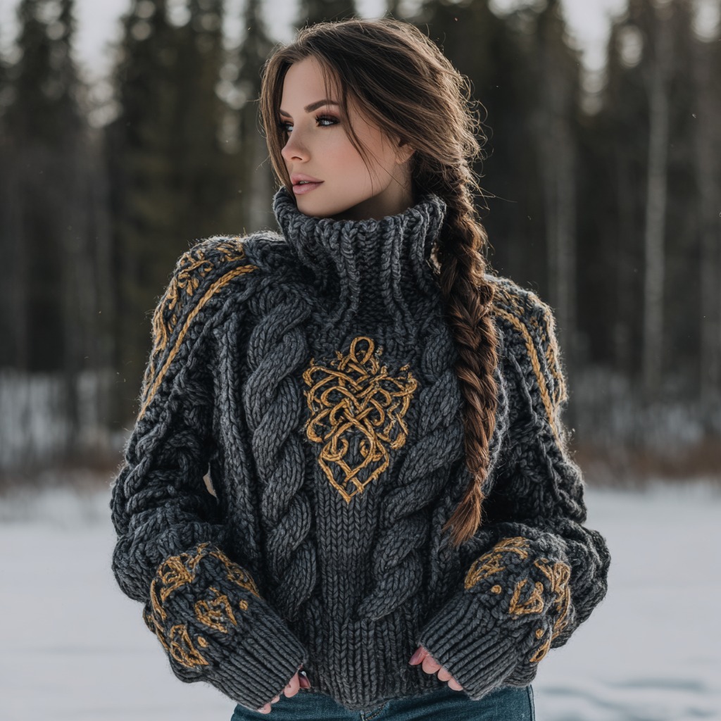 Women's Viking Celtic Knot Jacquard Warm Turtleneck Sweater