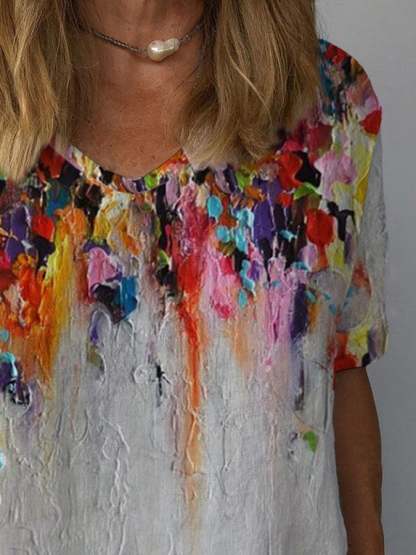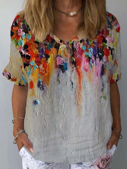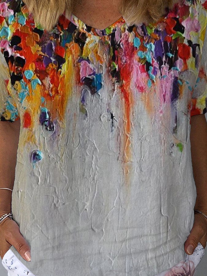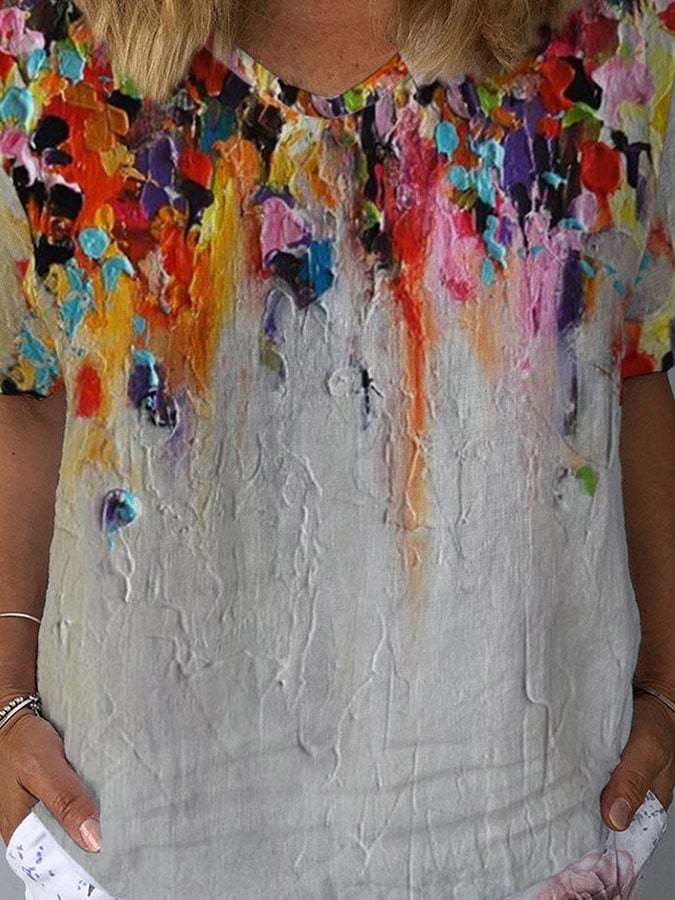 Casual Floral Oil Painting Print T-Shirt