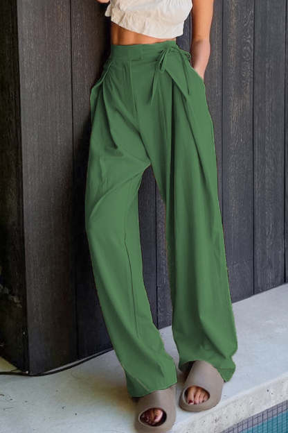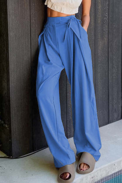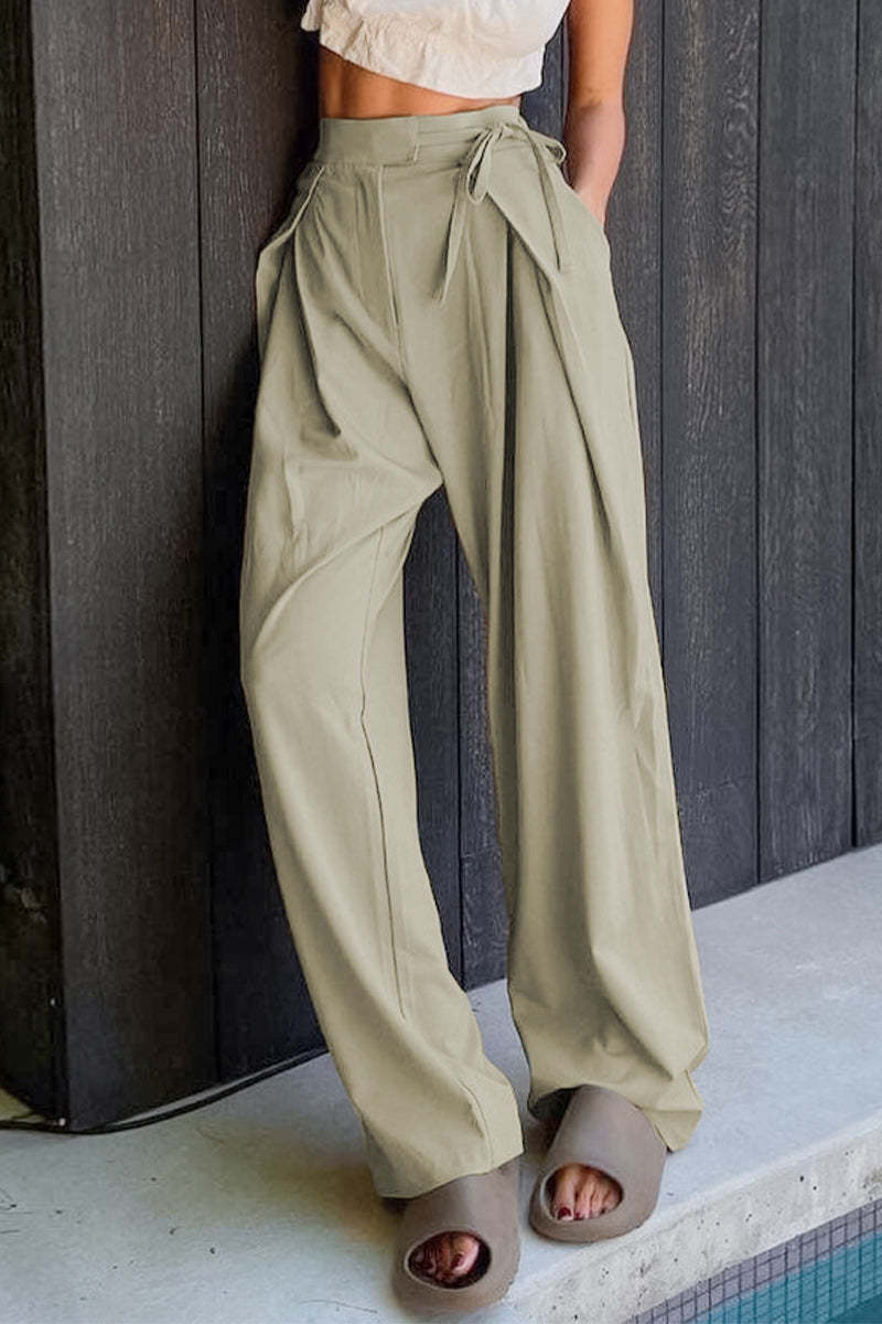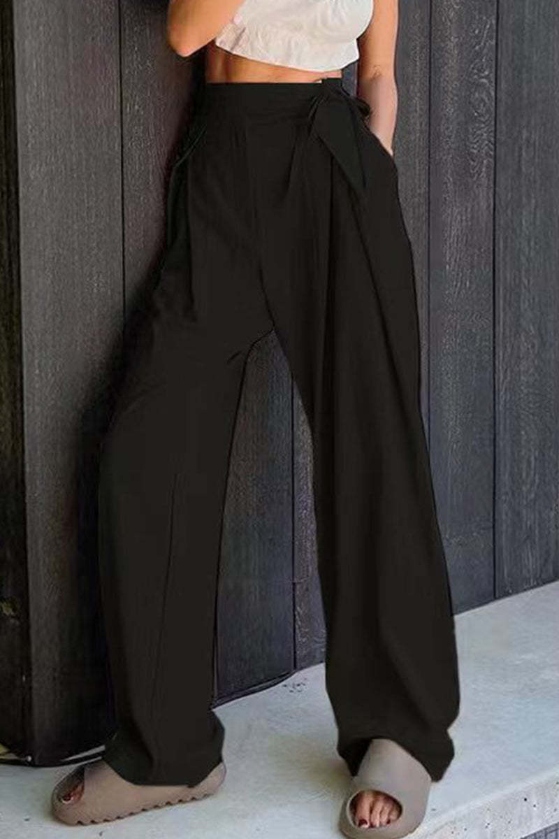 Casual Solid Frenulum Loose High Waist Straight Solid Color Bottoms