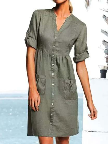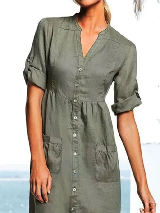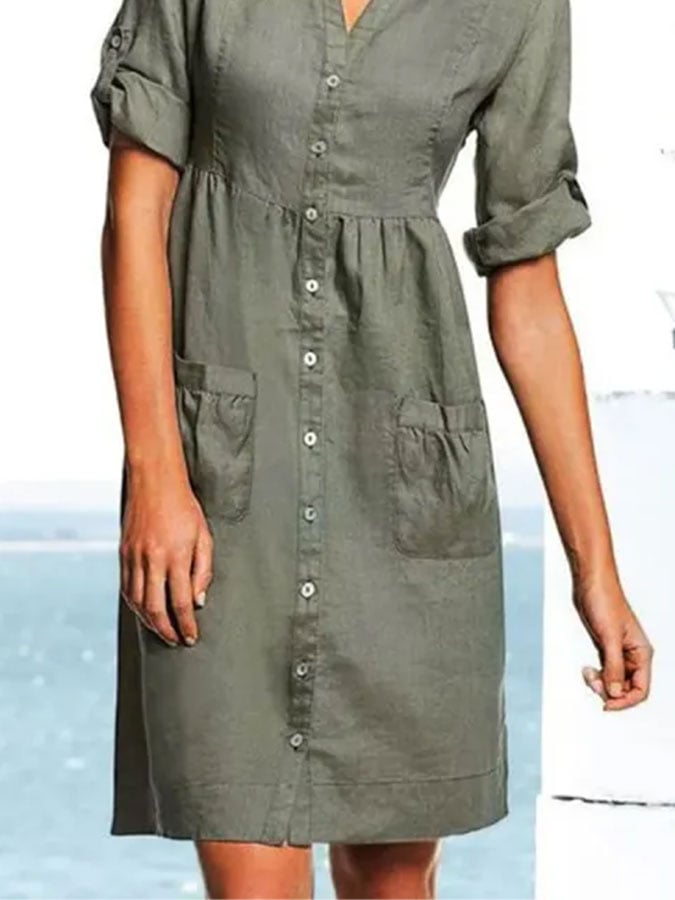 Casual V Neck Pocket Dress