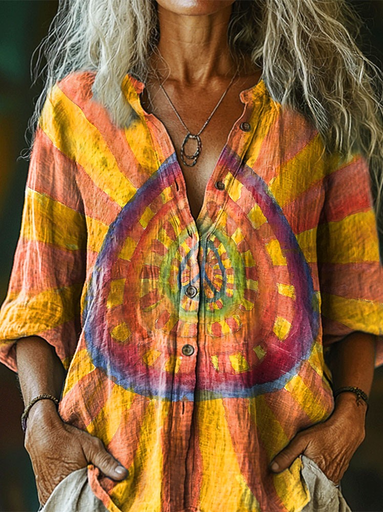 Colorful Hippie Women's Print Casual Cotton Linen Shirt