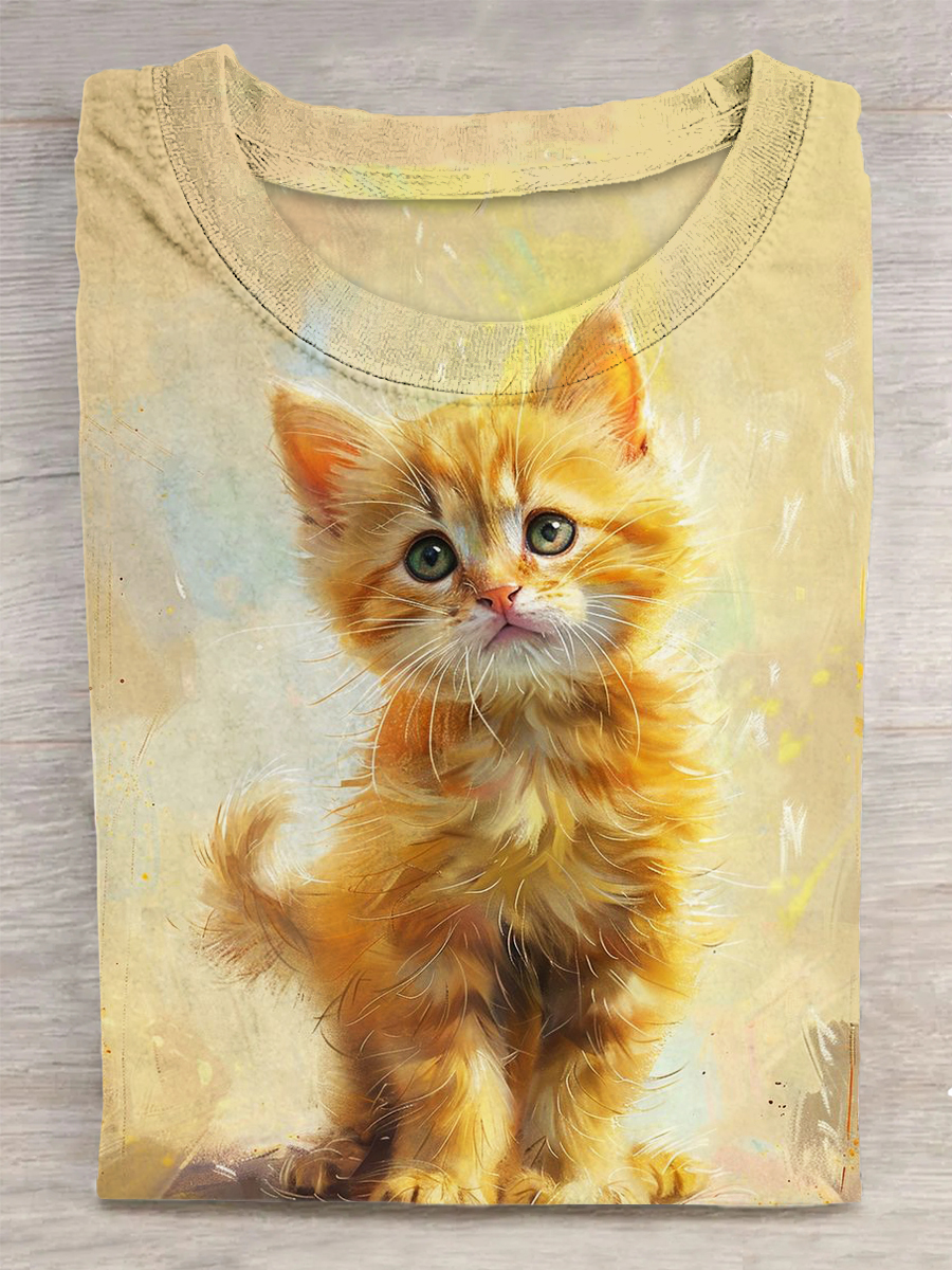 Cute Cat Printed Vintage Fashion Loose Short Sleeve T-Shirt