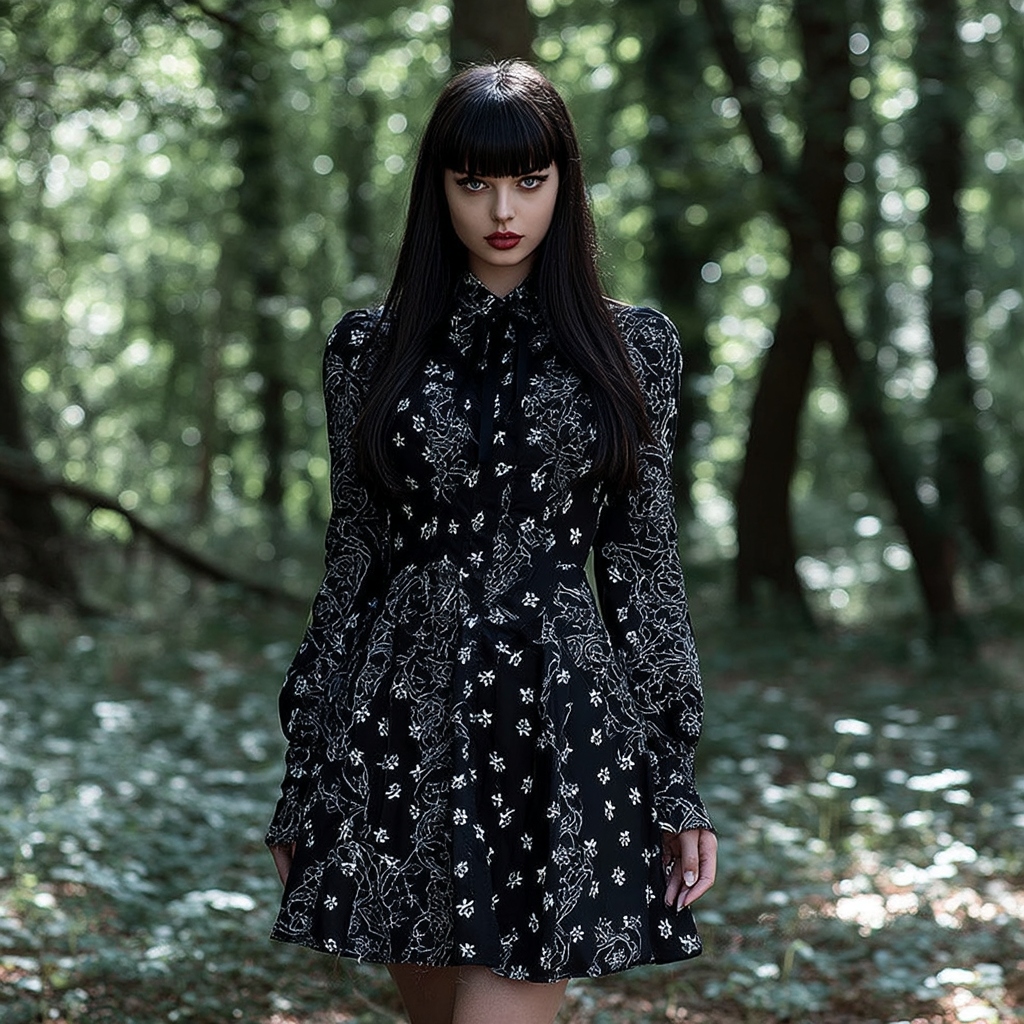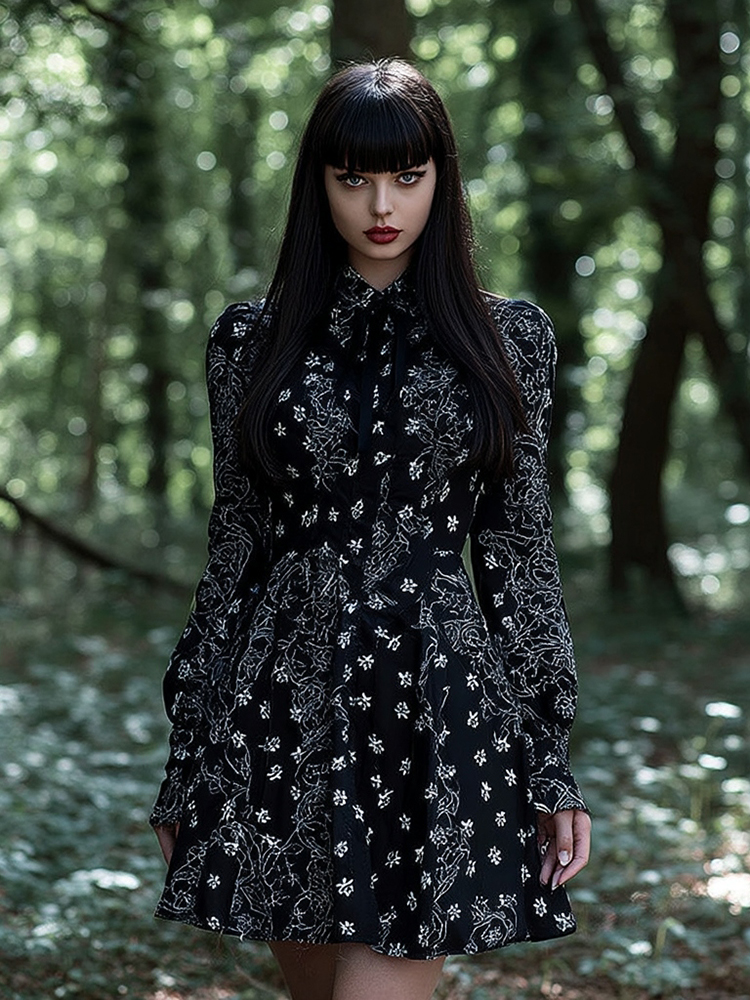 Halloween Gothic Floral Peter Pan Collar Long Sleeve Mini Dress