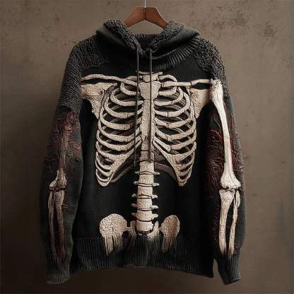Halloween Skeleton Inspired Anatomy Cozy Knit Hooded Sweater