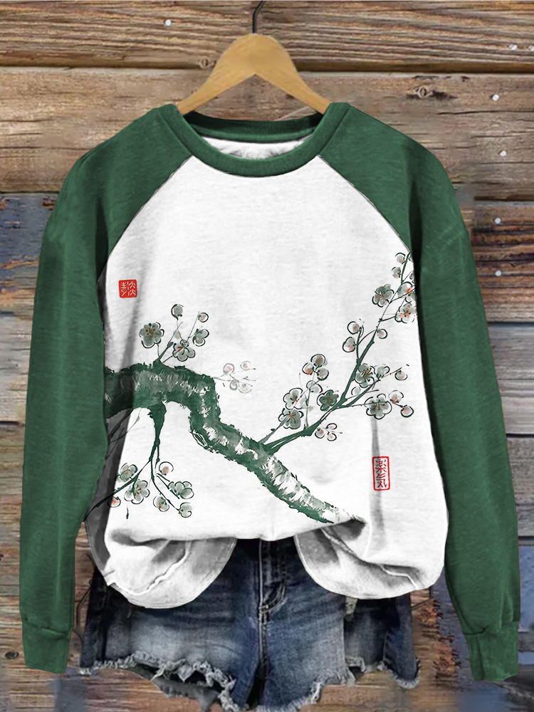Japanese Cherry Blossoms Art Contrast Sleeve Sweatshirt