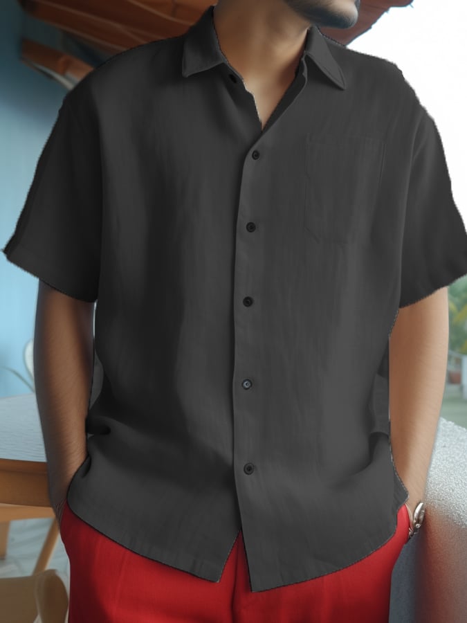 Men's Casual Simple Linen Lapel Pocket Shirt