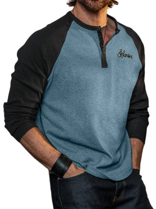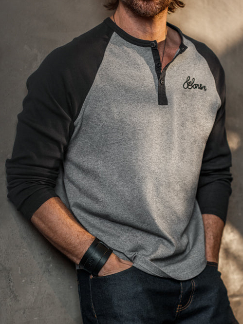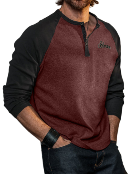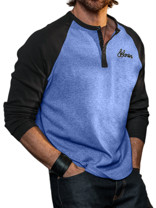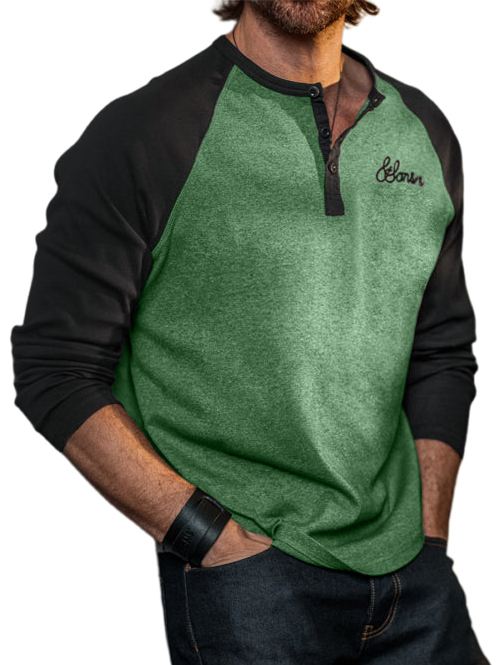 Men's Henley Collar Contrast Raglan Sleeve Top