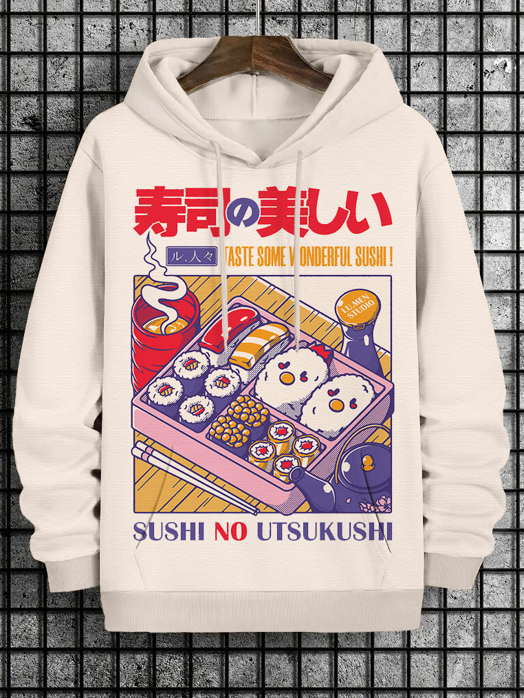 Men's Japanese Sushi No Utsukushi Illustration Print Casual Hoodie