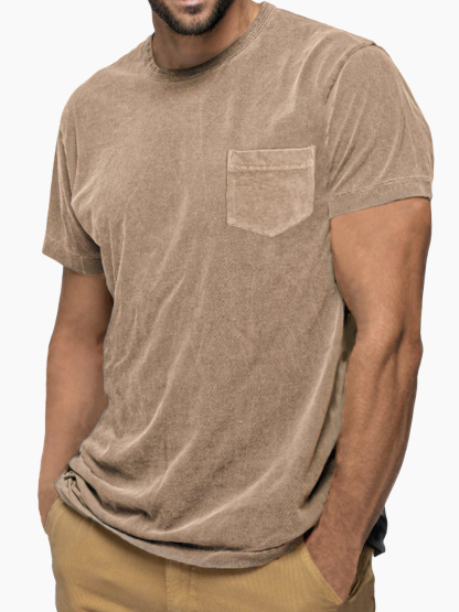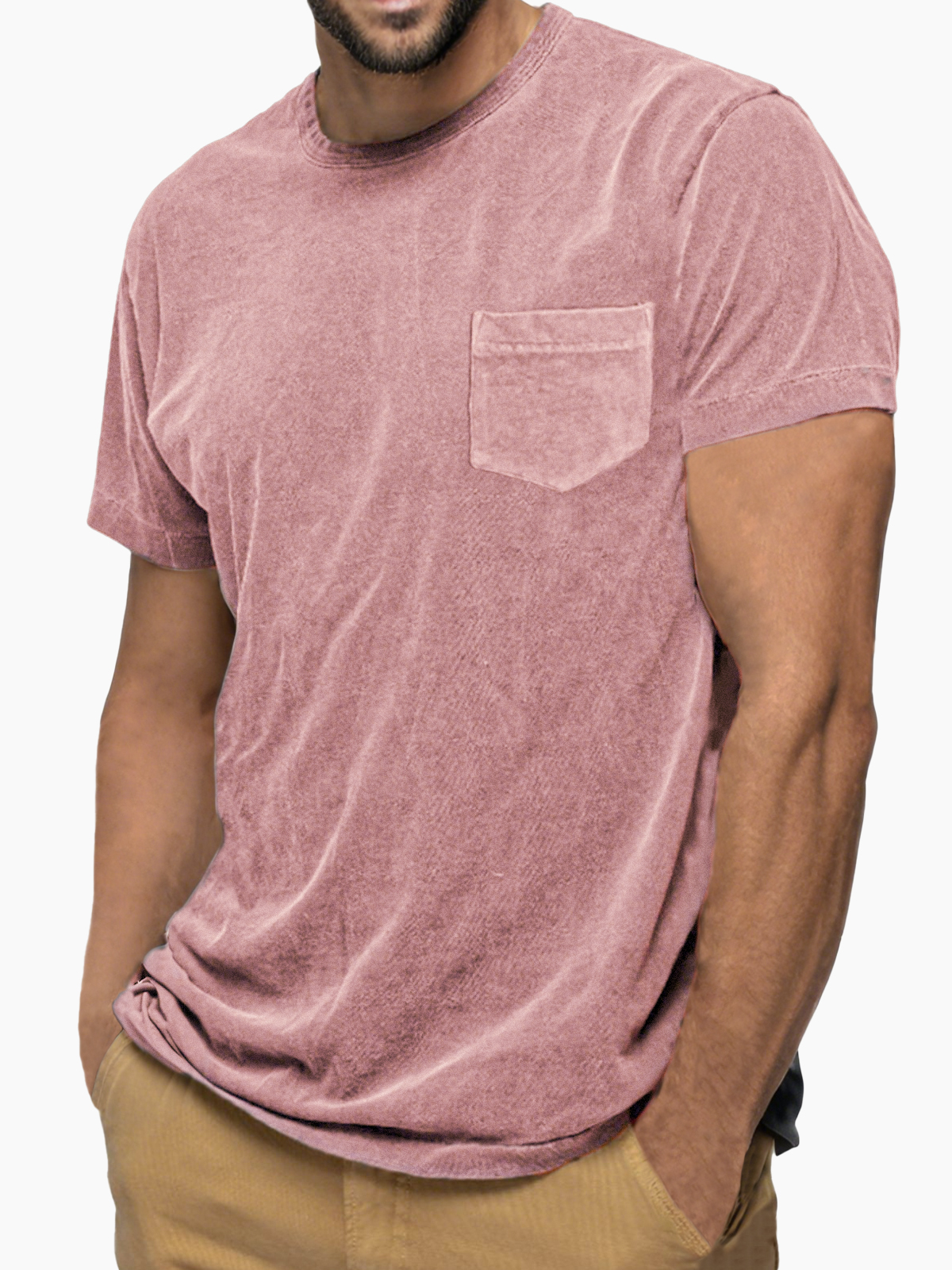 Men's Vintage Distressed Soft Cotton Short Sleeve Basic T-Shirt with Chest Pocket