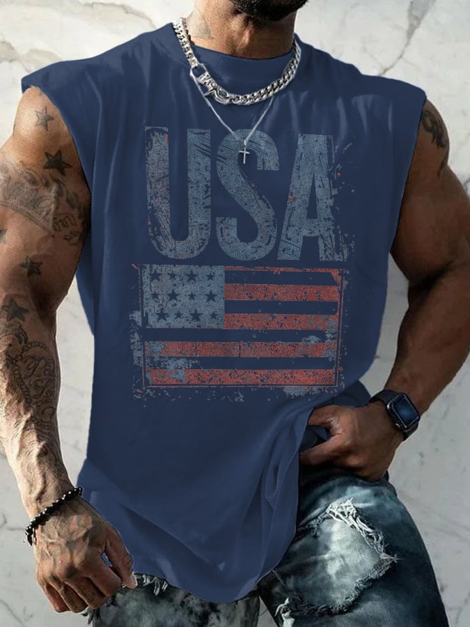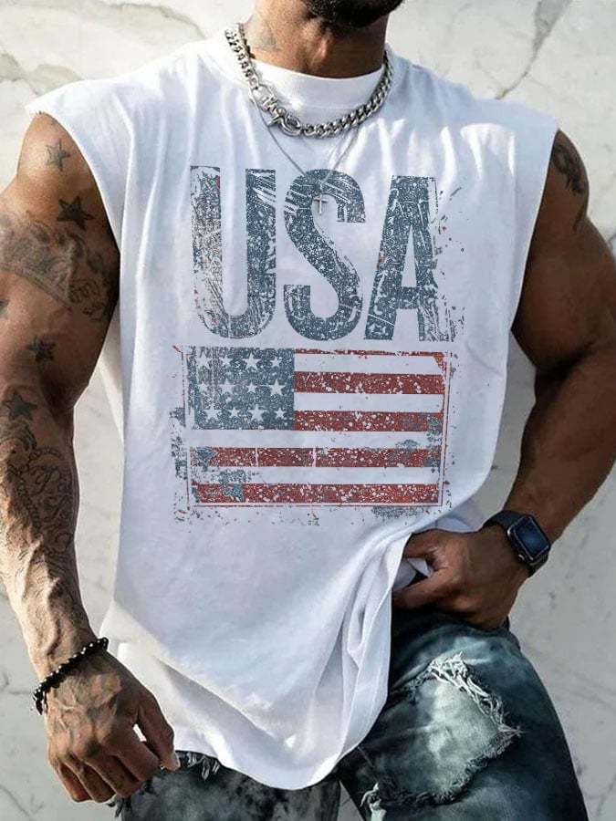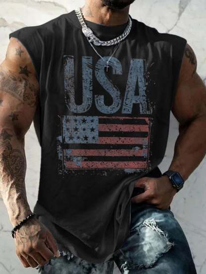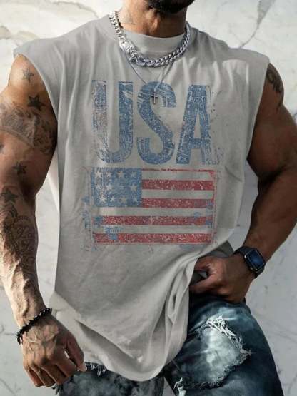 Retro Independence Day Flag USA Print Tank Top