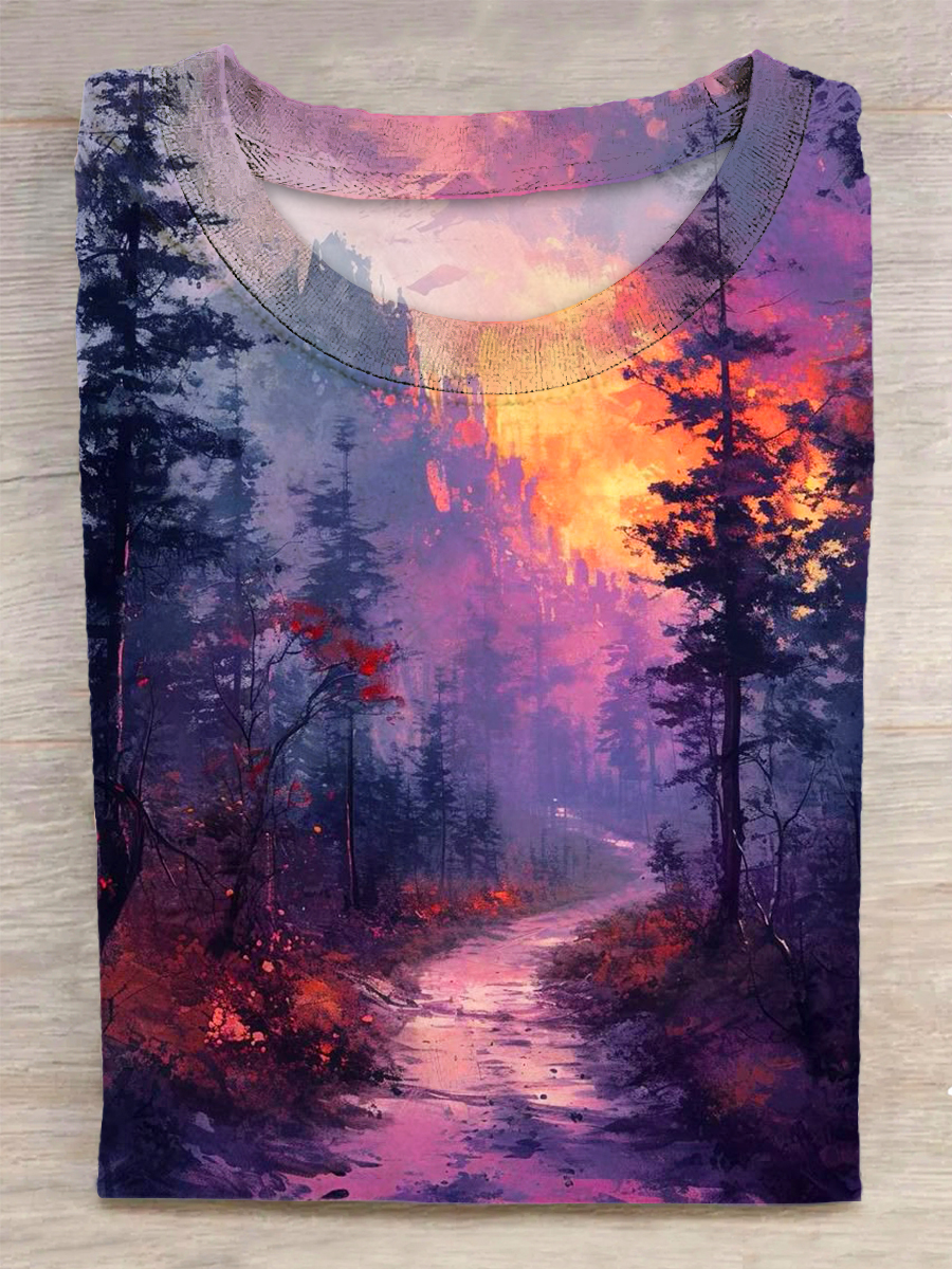 Scenery Printed Vintage Fashion Loose Short Sleeve T-Shirt