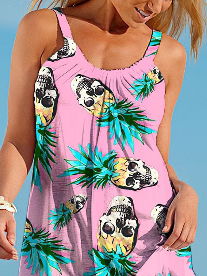Skull Printed Fruit Slip Dress