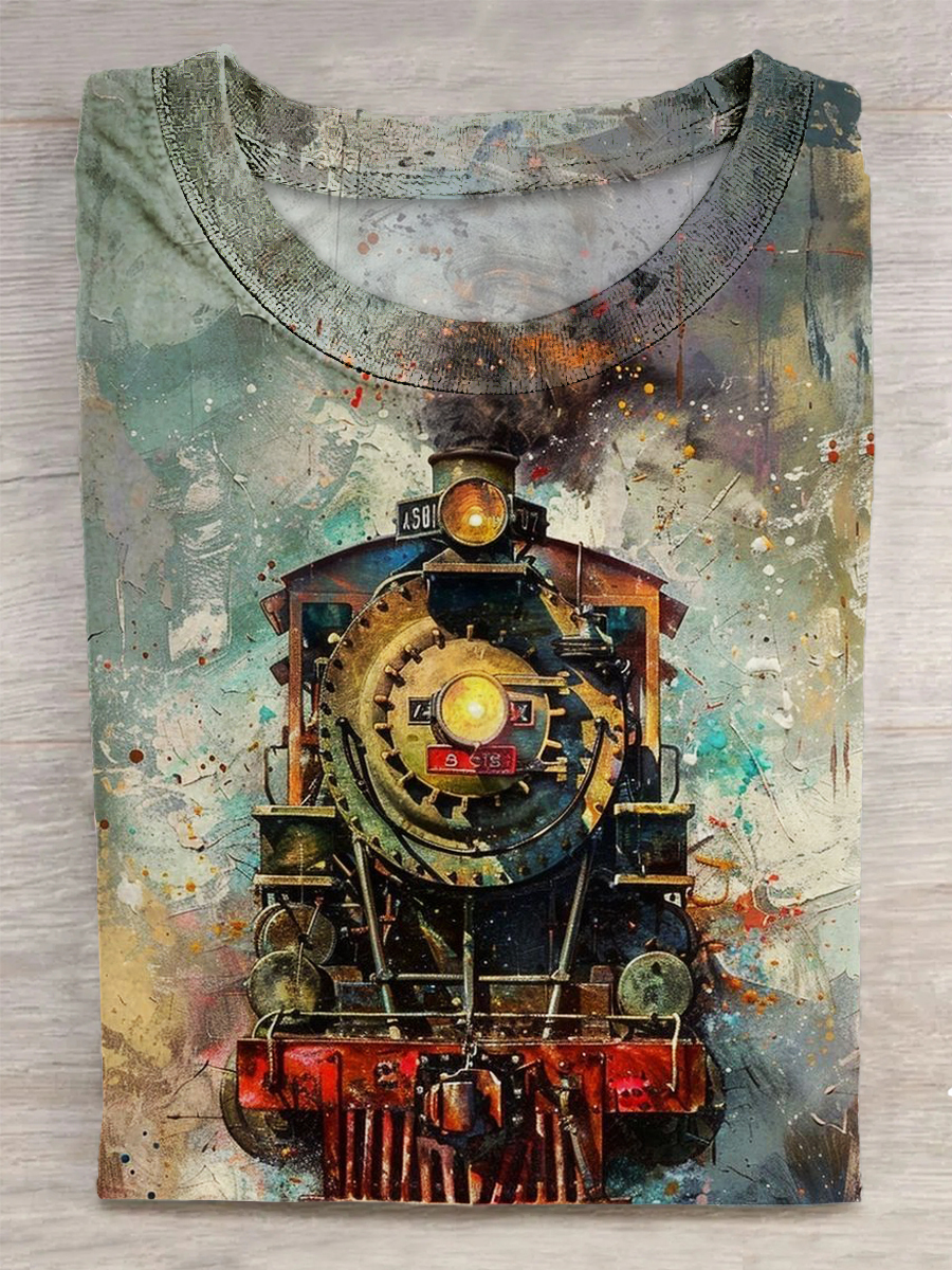 Train Printed Vintage Fashion Loose Short Sleeve T-Shirt