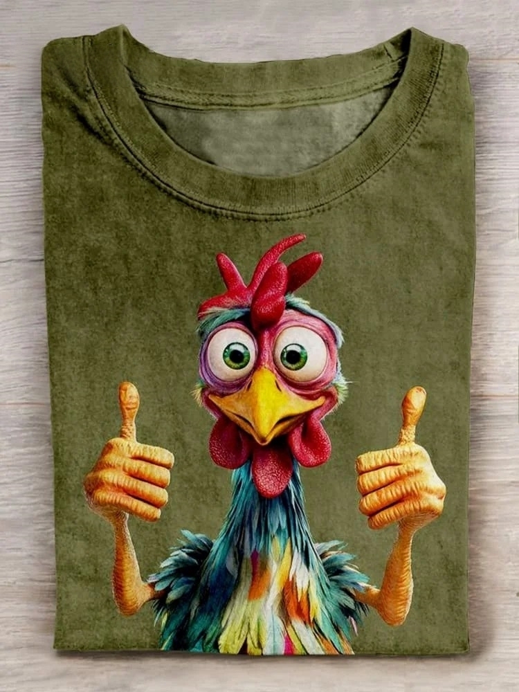 Funny Chicken Art Print Casaul Short Sleeve T-shirt