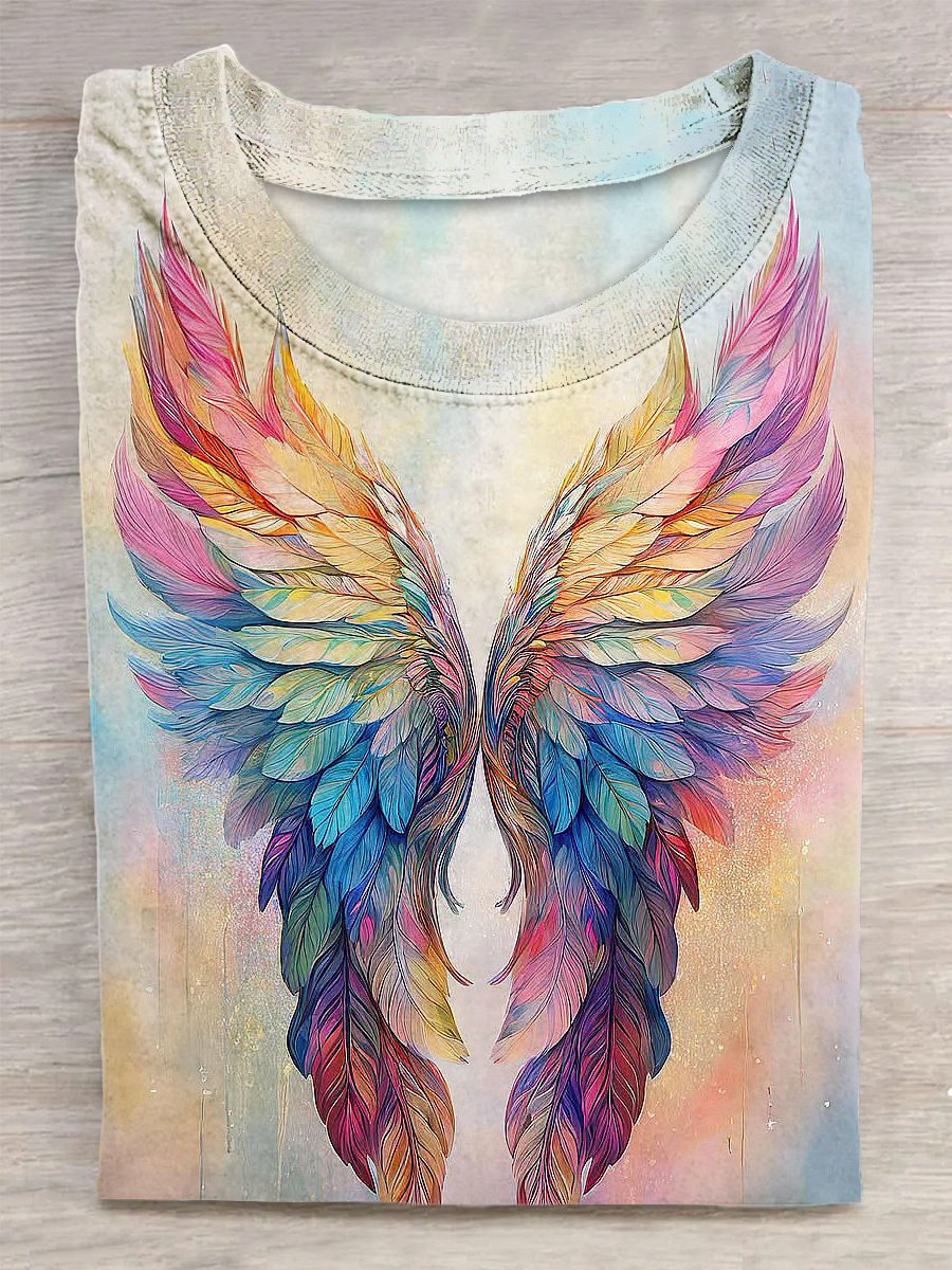 Unisex Wing Printed Vintage Fashion Loose Short Sleeve T-Shirt