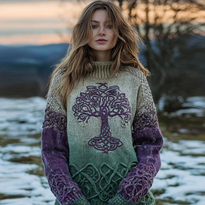 Viking Tree Of Life Embroidered Gradient Turtleneck Sweater