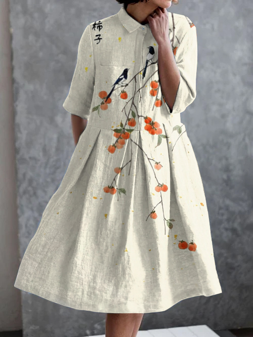 Vintage Art Print Casual Pocket Half Sleeve Dress