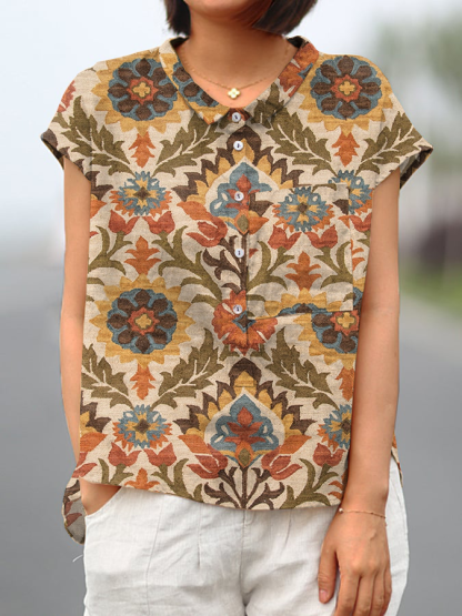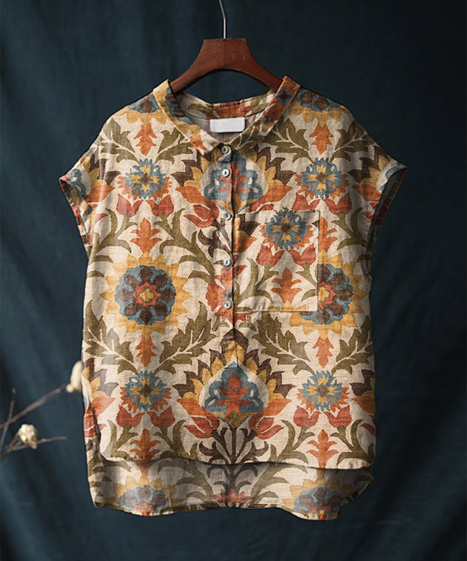 Vintage Cotton and Linen Totem Print Casual Shirt