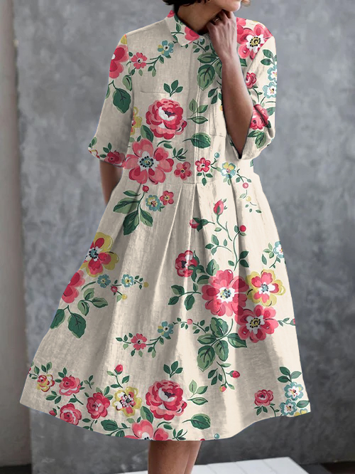 Vintage Floral Print Casual Pocket Half Sleeve Dress