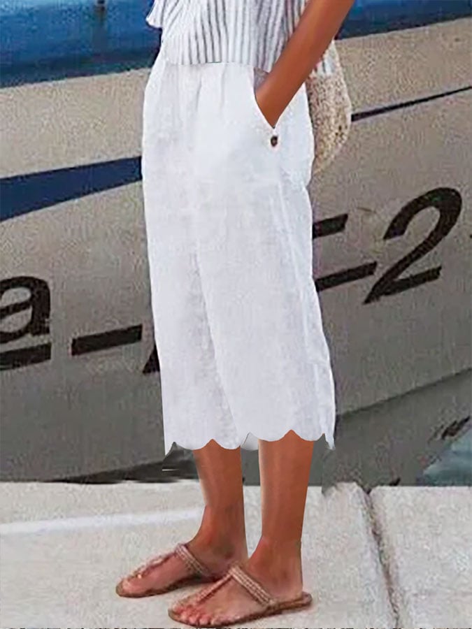 Women's Casual Cotton Linen Cropped Pants