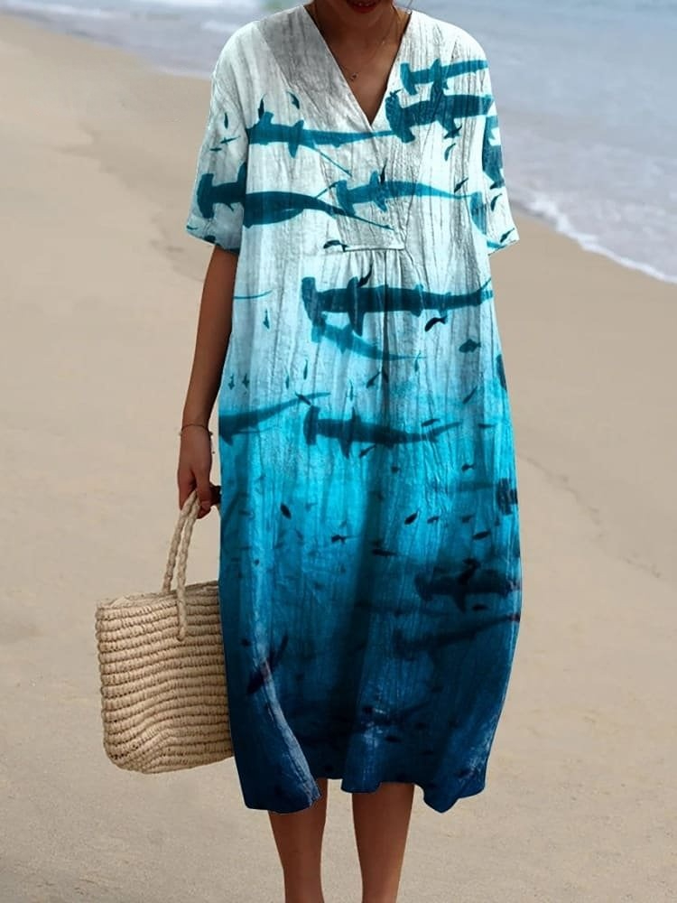 Women's Ocean Art Print Casual Dress