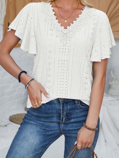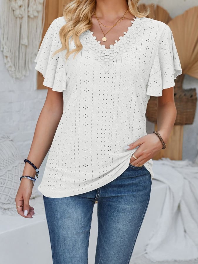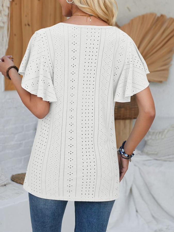 Women's Pure Color New Products Vedic Vedic Sleeve Pure Loose T -Shirt