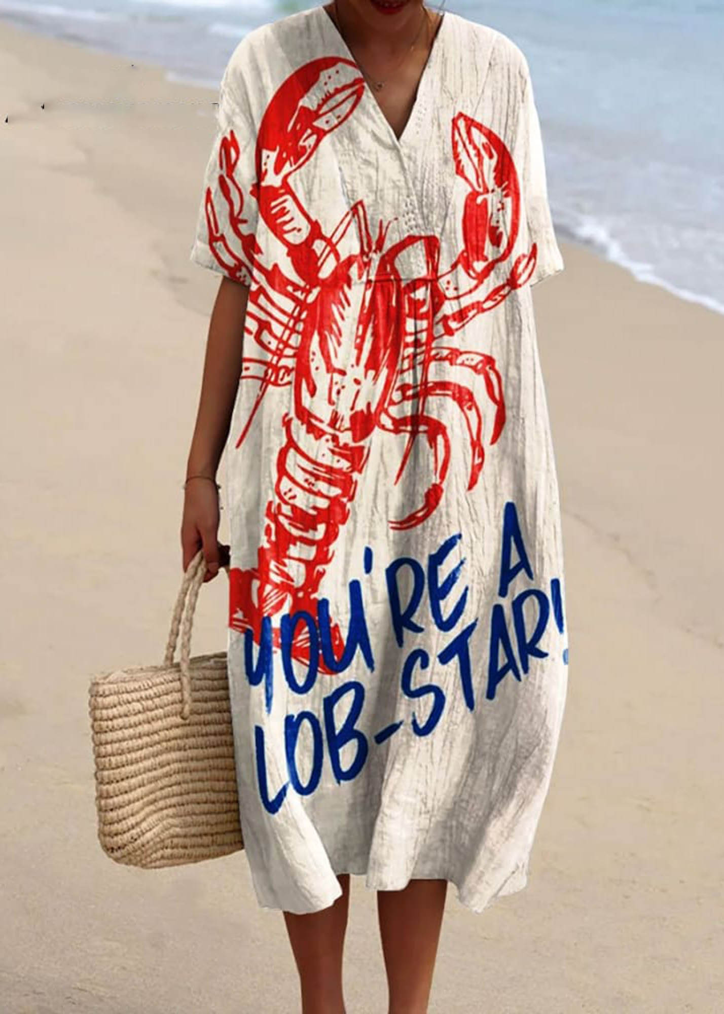 Women's Vintage Fish Lobster Art Print Flowy Dress