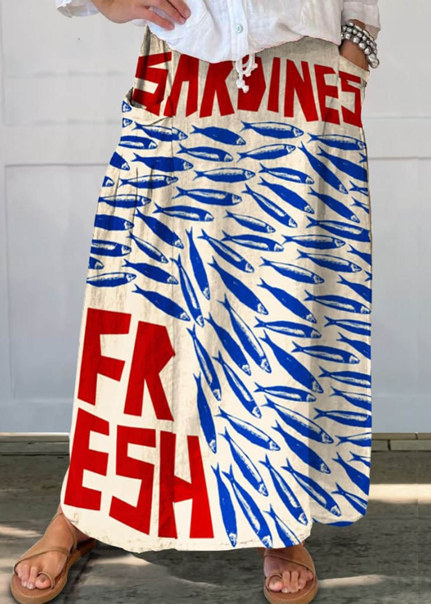 Women's Vintage Fish Sardines Art Print Linen Pocket Skirt