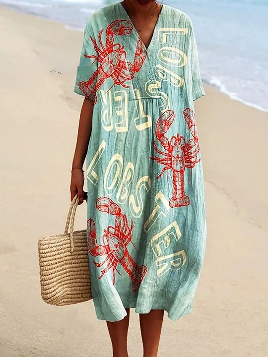Women's Vintage Lobster Art Print Flowy Dress
