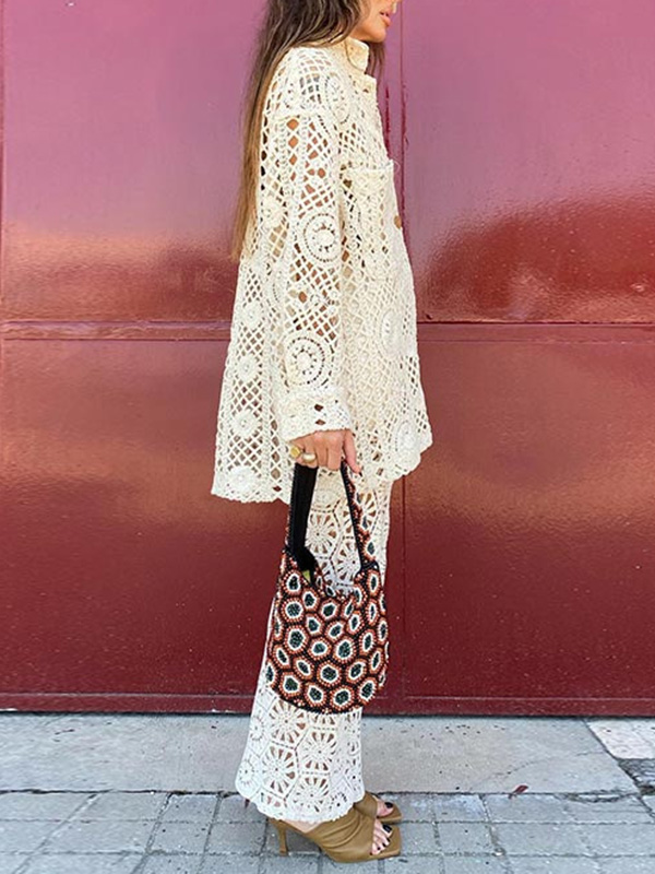 Flower Hollow Long Sleeves Shirt && Pants Two-Pieces Set