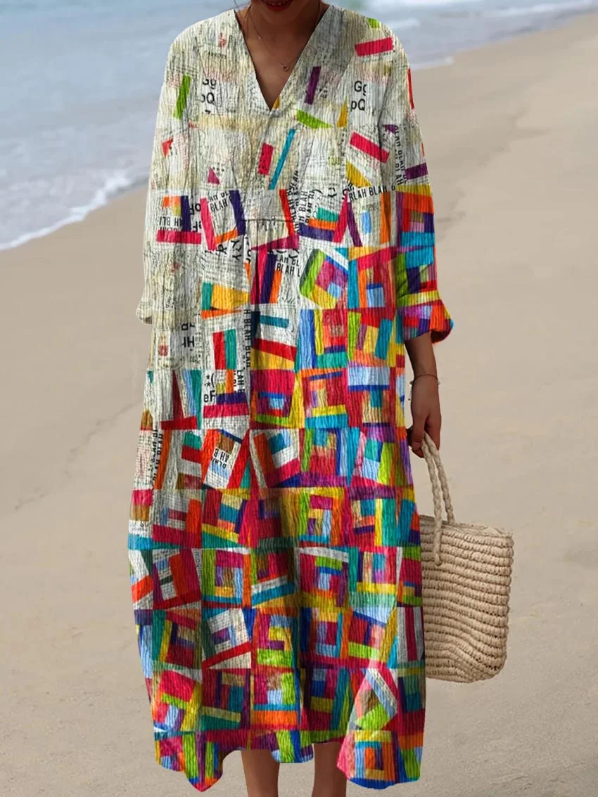 Women's Vintage Abstract Geometric Color Block Art Print Dress