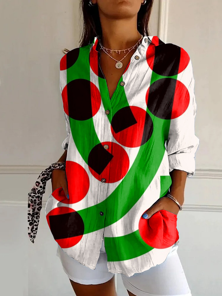 Women's Geometric Abstract Art Print Casual Cotton and Linen Shirt