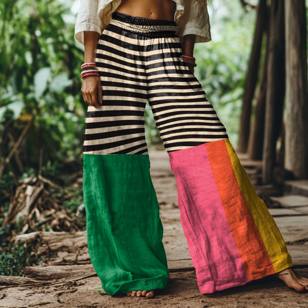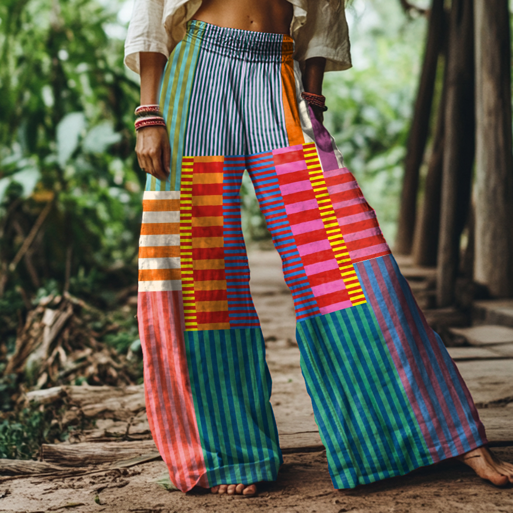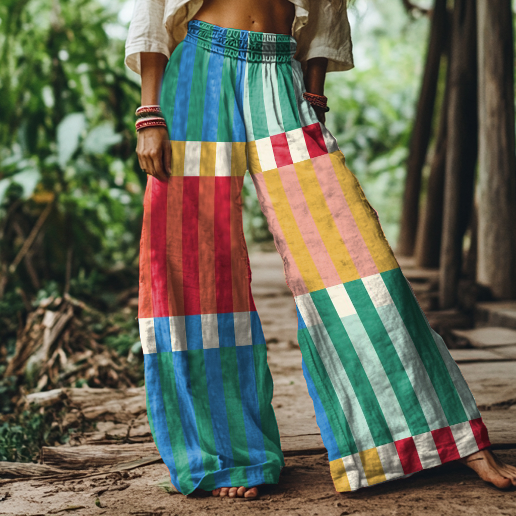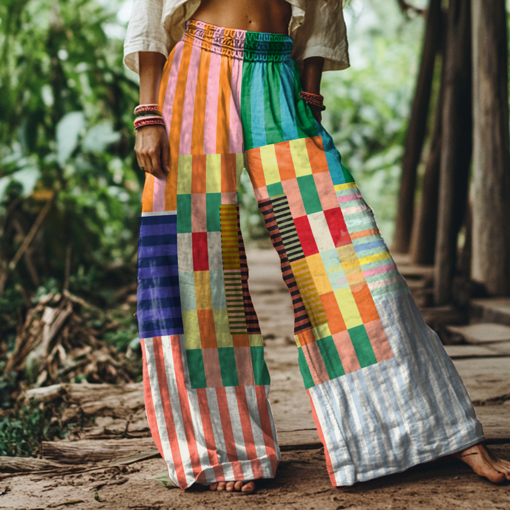 Retro Abstract Geometric Print Loose Wide Leg Pants